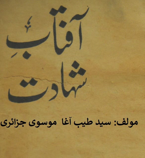 - نام کتاب: آفتاب شہادت (حصہ اول ) ۔ مؤلف : حجۃ الاسلام علامہ مفتی سید طیب آغا موسوی جزائری ۔ ناشر: ادارہ علوم آل محمد شاد باغ لاہور ۔ تاریخ نشر: ہجری۔ عیسوی ۔ زبان: اردو۔ موضوع: مناظرہ، الجواب، علم کلام، رد خلافت معاویہ و یزید، رد خلافت بنو امیہ، رد خلافت شیخین وثلاثہ، آفتاب شہادت (حصہ اول ) ۔