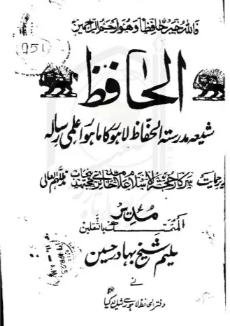 - نام کتاب: رسالہ الحافظ ( جلد 01نمبر02) رمضان 1343ہجری ۔ زیر حمایت : آیت اللہ مفسر قرآن سید علی حائری رضوی لاہوری ۔ مدیر : حکیم شیخ بہادر حسین ۔ ناشر: دفتر الحافظ لاہور ۔ تاریخ نشر: ۔1343 ہجری۔ 1925عیسوی۔ زبان: اردو۔ موضوع:۔ رسائل و جرائد، ماہنامہ، رسائل، استفتات۔