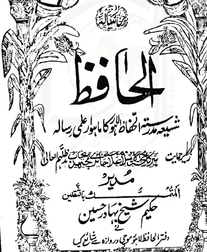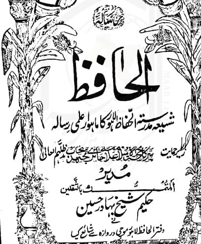 - نام کتاب: رسالہ الحافظ ( جلد 01نمبر06) محرام الحرام 1344ہجری ۔ زیر حمایت : آیت اللہ مفسر قرآن سید علی حائری رضوی لاہوری ۔ مدیر : حکیم شیخ بہادر حسین ۔ ناشر: دفتر الحافظ لاہور ۔ تاریخ نشر: ۔1344 ہجری۔ 1925عیسوی۔ زبان: اردو۔ موضوع:۔ رسائل و جرائد، ماہنامہ، رسائل، استفتات۔