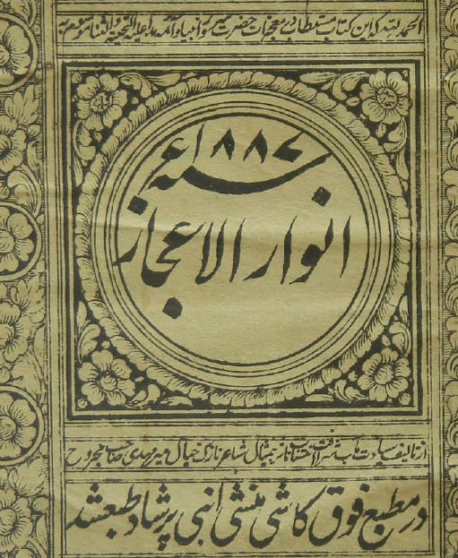 - نام کتاب: انوار الاعجاز (حصہ اول ) ۔ مؤلف :شاعر اہلبیت میر مہدی مجروح ۔ ناشر:مطبع فوق کاشی منشی انبی پرشاد ۔ تاریخ نشر: 1304ہجری۔1887 عیسوی ۔ زبان: اردو ۔ موضوع: سیرت النبی ص، سیرت رسول خاتم ص، سیرت و حیات طیبہ محمد ابن عبد اللہ ص، رسول کائنات ص، حیات طیبہ و معجزات حضرت رسول خدا ص، انوار الاعجاز (حصہ اول ) ۔