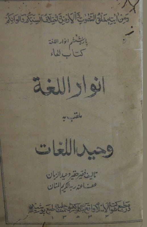 انوار اللغۃ ملقب بہ وحید اللغات (حصہ 06 کتاب الحاء)