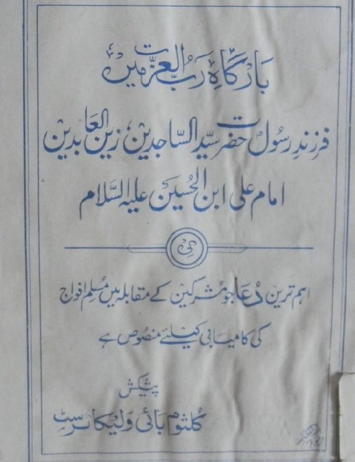 نام کتاب: بارگاہ رب العزت میں فرزند رسول سید الساجدین زین العابدین کی دعا (لاھل الثغور) ۔