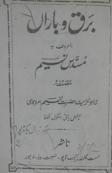 برق و باراں معروف مسدس نسیم
