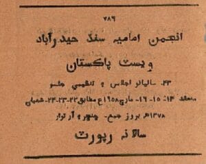 سالانہ رپورٹ(انجمن امامیہ سندھ حیدر آباد مارچ 1958)