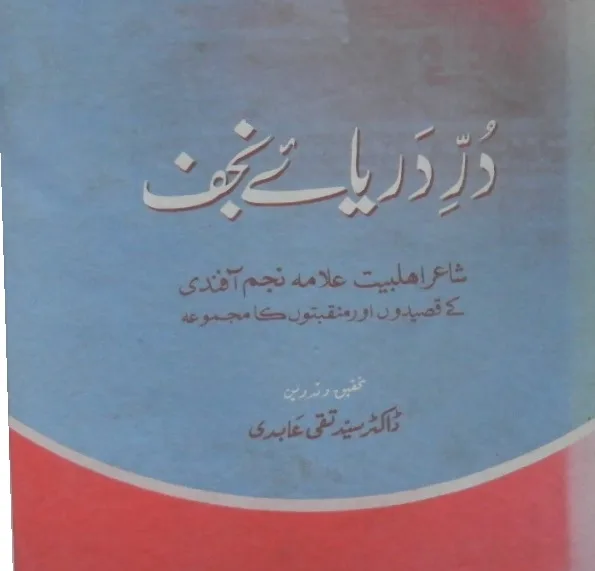 - نام کتاب:در دریائے نجف (مجموعہ قصائد و منقبت)۔ شاعر : شاعر اہلبیت نجم آفندی نجمی ۔ تحقیق و تدوین : ڈاکٹر سید تقی حسن عابدی ۔ ناشر: کتاب نگر حسن آرکیڈ ملتان کینٹ پاکستان۔ تاریخ نشر: 1428 ہجری۔2007عیسوی ۔ زبان: اردو ۔ موضوع:مجموعہ کلام، قصائد، منقبت، فضائل اہلبیتؑ، مناقب اہلبیتؑ، منظوم، در دریائے نجف (مجموعہ قصائد و منقبت)۔