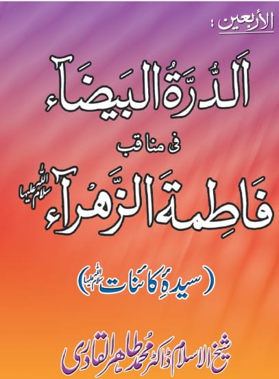 - نام کتاب: الدرۃ البیضا فی مناقب فاطمۃ الزہراؑ(سیدہ کائناتؑ ) ۔ مؤلف : ڈاکٹر محمد طاہر القادری ۔ ناشر:منہاج القرآن پبلی کیشنز لاہور ۔ تاریخ نشر: ۔ 1428 ہجری۔2007عیسوی۔ زبان: اردو۔ موضوع:۔ سیرت فاطمہ ع، سیرت فاطمہ بنت محمد ص، حیات سیدہ فاطمہ ع، سیرت ام الآئمہ سیدہ فاطمہ ع، زندگانی فاطمہ ع، فضائل سیدہ فاطمہؑ، سیدہ کائنات، ، الدرۃ البیضا فی مناقب فاطمۃ الزہراؑ(سیدہ کائناتؑ )۔