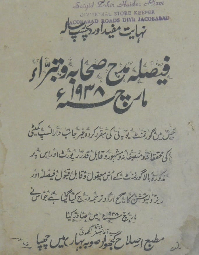 فیصلہ مدح صحاب و تبرا (مارچ 1938 )
