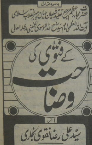 نام کتاب: فتوی کی وضاحت (آیت اللہ خمینی رح ) ۔