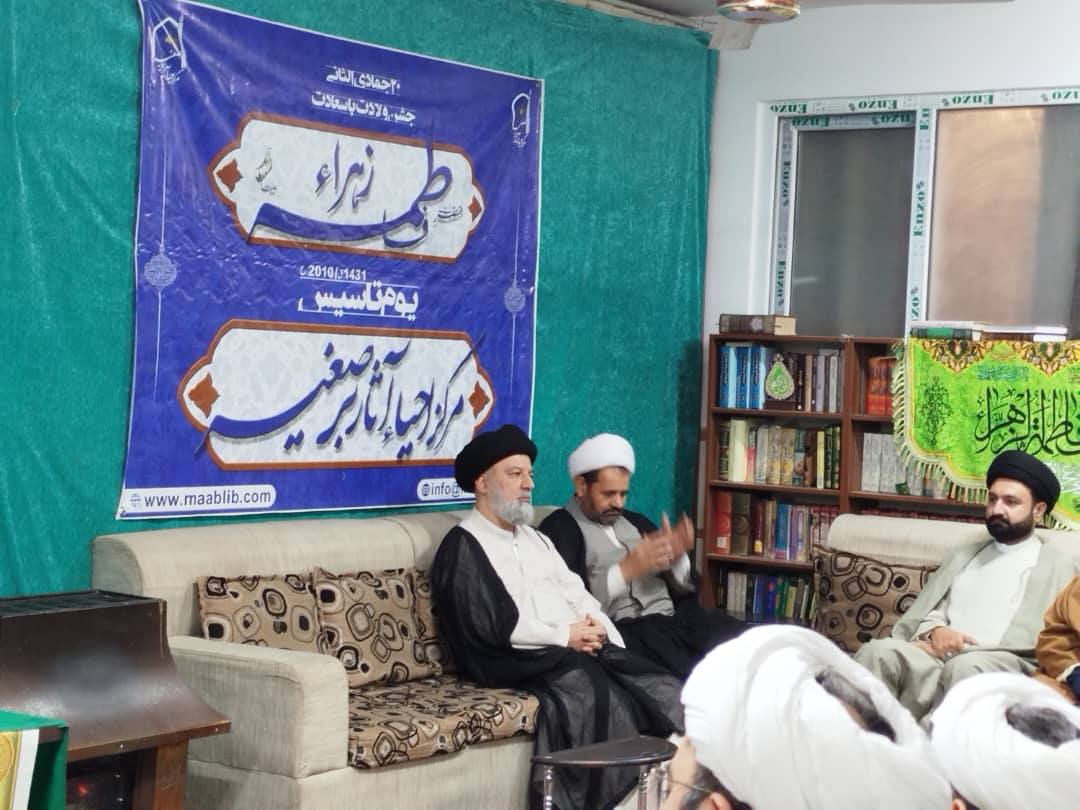 مرکز احیاء آثار برصغیر (مآب) میں ایک بامقصد، روحانی اور علمی وقار سے بھرپور تقریب کا انعقاد کیا گیا۔ یہ تقریب ادارے کی پندرہ سالہ علمی خدمات کی تکمیل اور سیدہ فاطمہ بنتِ محمد ﷺ کی ولادتِ باسعادت کی مناسبت سے مشترکہ طور پر منعقد کی گئی۔تقریب کی سرپرستی حوزۂ علمیہ کے مدرسِ اعلیٰ، آیت اللہ غیب غلامی ہَرساوی اور حجۃ الاسلام ڈاکٹر عابدی نژاد دامت برکاتُہما نے فرمائی، جب کہ انتظامی و علمی نگرانی مدیرِ اعلیٰ مرکز، حجۃ الاسلام طاہر عباس اعوان کے زیرِ اہتمام رہی۔
