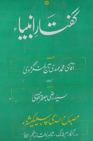 - نام کتاب:گفتار انبیا( اقوال و کلمات انبیاؑ) ۔ مؤلف : مولانا سید رضی جعفر نقوی ۔ ناشر: مصباح الہٰدی پبلی کیشنز لاہور، مصباح القرآن ٹرسٹ لاہور ۔ تاریخ نشر: ۔1418 ہجری۔1997 عیسوی۔ زبان: اردو ۔ موضوع:۔ فرامین و ارشادات معصومینؑ، کلمات، خطبات، واقعات انبیاؑ، ، نصیحت ، وصیت، ترجمہ شدہ کتب، گفتار انبیا( اقوال و کلمات انبیاؑ)۔