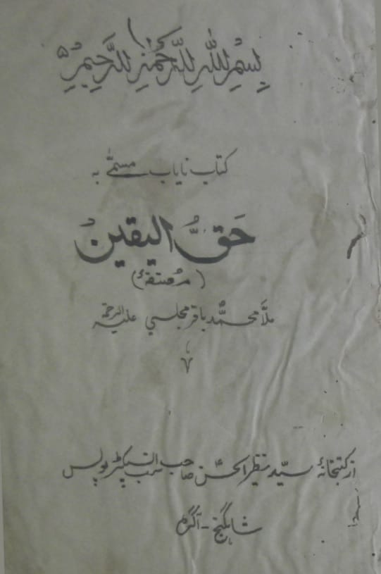 نام کتاب: حق الیقین (قلمی نسخہ ) ۔