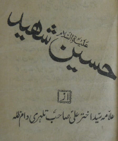 - نام کتاب: حسین شہید علیہ السلام (رسالہ) ۔ مؤلف : علامہ سید اختر علی تلہری ۔ ناشر: امامیہ مشن پاکستان ٹرسٹ لاہور۔ تاریخ نشر: ۔ 1383 ہجری۔1963عیسوی۔ زبان: اردو ۔ موضوع:۔ رسائل ، حسین ابن علی ؑ ، سید الشہداؑ، امام حسینؑ ، حسین شہید علیہ السلام (رسالہ) ۔