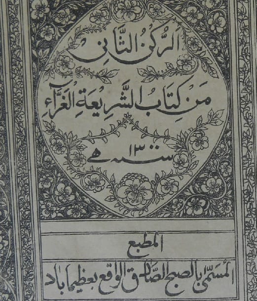 - نام کتاب:الشریعۃ الغراء (رکن الثانی)۔ مؤلف : علامہ مفتی سید محمد عباس موسوی شوستری جزائری نیشاپوری۔ ناشر:صبح صادق عظیم آباد ۔ تاریخ نشر : ۔ 1300 ہجری۔1883 عیسوی۔ زبان:عربی۔ موضوع:فقہ، ابواب الفقہ، فقہ استدلالی، باب طہارت، پاکیزگی فی الدین، فقہ و اصول الفقہ، احکام و مسائل فقہ طہارت، الشریعۃ الغراء (رکن الثانی)۔