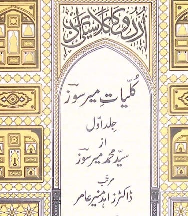 - نام کتاب: کلیات میر سوز جلد اول (مجموعہ کلام ) ۔ مؤلف : سید محمد میر سوز ۔ مرتب : ڈاکٹر زاہد منیر عامر ۔ ناشر: مجلس ترقی ادب لاہور ۔ تاریخ نشر:1428 ہجری۔2007عیسوی ۔ زبان: اردو۔ موضوع:ادب، مجموعہ کلام ، شخصیات، مشاہیر، تاریخ، اردو کے شعرا، برصغیر کے شعرا، شعر و شاعری ، کلیات میر سوز جلد اول (مجموعہ کلام ) ۔