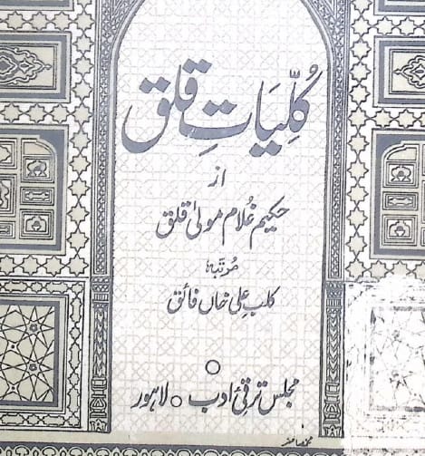 - نام کتاب: کلیات قلق (مجموعہ کلام ) ۔ مؤلف :حکیم غلام مولیٰ قلق ۔ مرتبہ : کلب علی خاں فائق ۔ ناشر: مجلس ترقی ادب لاہور ۔ تاریخ نشر:1386 ہجری۔1966عیسوی ۔ زبان: اردو۔ موضوع:ادب، مجموعہ کلام ، اشعار، شخصیات، مشاہیر، تاریخ، اردو کے شعرا، برصغیر کے شعرا، شعر و شاعری ، کلیات قلق (مجموعہ کلام ) ۔