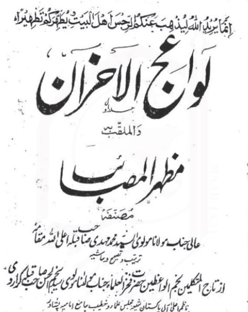 موضوع: مجالس، مجموعہ مجالس، بصیرت افروز مجالس، مصائب، مصائب آل محمدؑ، گریہ،مصائب اہلبیتؑ، مصائب کربلا، عزا داری، لواعج الاحزان (جلد اول، ملقب مظہر المصائب) ۔