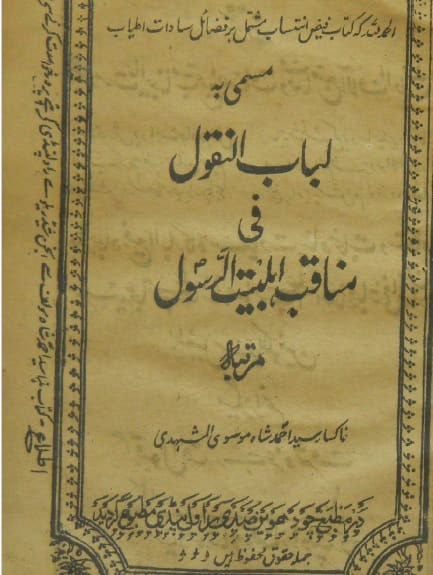 - نام کتاب:لباب النقول فی مناقب اہلبیت الرسول ﷺ ۔ مؤلف : سید احمد شاہ موسوی مشہدی ۔ ناشر: مطبع چودہویں صدی پریس راولپنڈی ۔ تاریخ نشر: ۔ ہجری۔ عیسوی۔ زبان: اردو ۔ موضوع:۔فضائل اہلبیتؑ، مناقب اہلبیتؑ، فضائل و افضلیت سادات، لباب النقول فی مناقب اہلبیت الرسول ﷺ۔