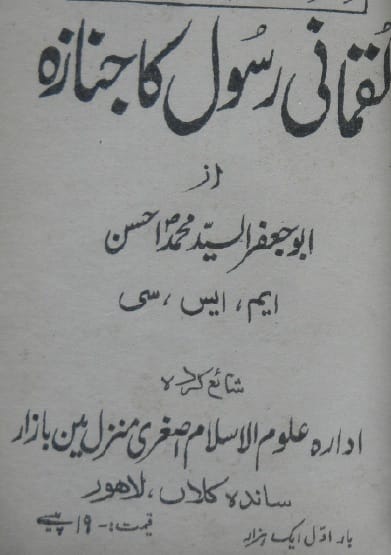 - نام کتاب: لقمانی رسول کا جنازہ (رسالہ ) ۔ مؤلف : ابو جعفر سید محمد احسن ایم ایس سی ۔ ناشر:ادارہ علوم الاسلام اصغری منزل ساندہ کلاں لاہور۔ تاریخ نشر: ۔ 1387ہجری۔ 1968عیسوی۔ زبان: اردو ۔ موضوع:۔مناظرہ، علم کلام،رسائل و جرائد ، مسئلہ ختم نبوت، ختم رسالت، لقمانی رسول کا جنازہ (رسالہ ) ۔