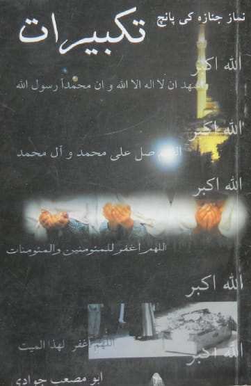 - نام کتاب:نماز جنازہ کی پانچ تکبیرات ۔ مؤلف : ابو مصعب جوادی۔ ناشر: مؤسسہ امام علی اسلام آباد۔ تاریخ نشر: ۔ 1422 ہجری۔ 2001عیسوی۔ زبان: اردو ۔ موضوع:۔علم کلام، مناظرہ ، پانچ تکبیرات جنازہ، رسول ص او ر اصحاب کی سیرت سے نماز جنازہ، نماز جنازہ کی پانچ تکبیرات ۔