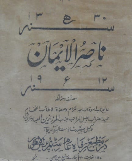 - نام کتاب:ناصر الایمان (سوالات کا جوابات)۔ مؤلف :جناب مرزا زین العباد قزلباش وکیل ۔ ناشر: در مطبع رفاہ عام سٹیم پریس لاہور۔ تاریخ نشر: ۔ 1330 ہجری۔ 1912عیسوی۔ زبان: اردو ۔ موضوع:۔مناظرہ، الجواب، رد مرزائیت، رد قادیانیت، ناصر الایمان (سوالات کا جوابات) ۔