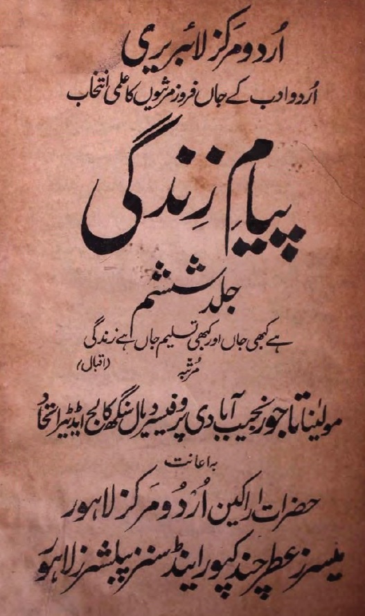 ناشر: اردو مرکز لاہور و میسرز عطر چند کپور اینڈ سنز پبلیشرز لاہور ۔