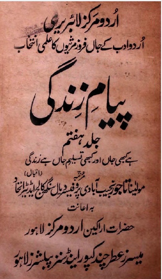 ناشر: اردو مرکز لاہور و میسرز عطر چند کپور اینڈ سنز پبلیشرز لاہور ۔