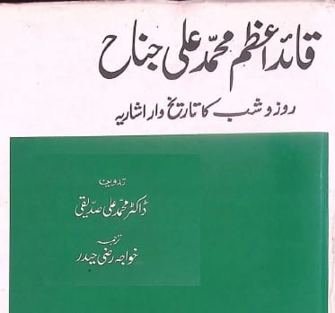 - نام کتاب:قائد اعظم محمد علی جناح (روز و شب کا تاریخ و ار اشاریہ) ۔ تدوین :ڈاکٹر محمد علی صدیقی ۔ ترجمہ : خواجہ رضی حیدر ۔ ناشر:قائداعظم اکادمی کراچی ۔ تاریخ نشر:1420 ہجری۔1999عیسوی ۔ زبان: اردو۔ موضوع:شخصیات، مشاہیر، جناح ، قائداعظم محمد علی ، تاریخ پاکستان، تحریک پاکستان، تحریک آزادی ، پاکستان،حیات قائداعظم،قائد اعظم محمد علی جناح (روز و شب کا تاریخ و ار اشاریہ) ۔