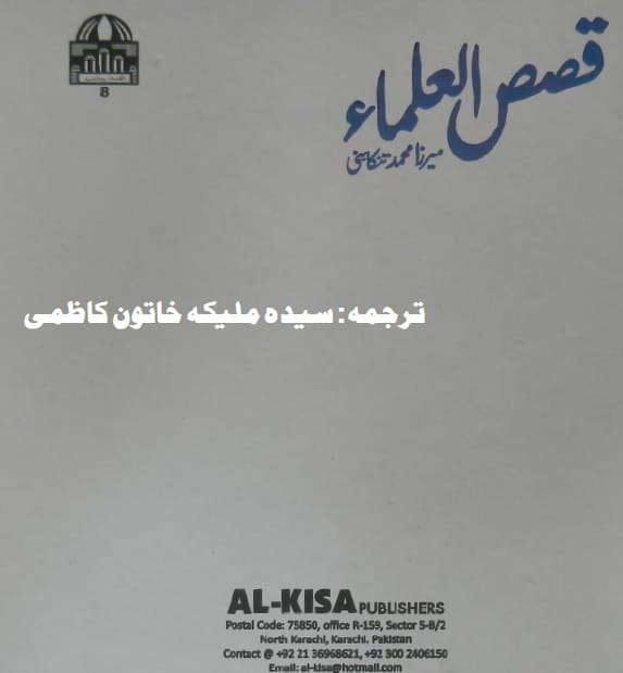 - نام کتاب:قصص العلماء (میرزا تنکابنی)۔ مترجم: سیدہ ملیکہ خاتون کاظمی ۔ ناشر: الکساء پبلشرز نارتھ کراچی ۔ تاریخ نشر: ۔ 1434 ہجری۔ 2013عیسوی۔ زبان: اردو ۔ موضوع:۔ تاریخ علما، تاریخ علما امامیہ، علما و اہل قلم ، تاریخ، ترجمہ شدہ کتب، قصص العلماء (میرزا تنکابنی) ۔