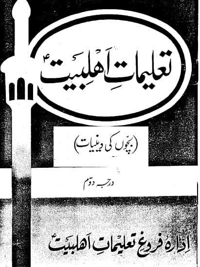- نام کتاب:تعلیمات اہلبیتؑ (درجہ دوم ) بچوں کی دینیات ۔ مؤلف : مولانا غلام علی پنجوانی ۔ ناشر:ادارہ فروغ تعلیمات اہلبیتؑ کراچی ، حسن علی بکڈپو کراچی۔ تاریخ نشر: ۔1416 ہجری۔1995 عیسوی۔ زبان: اردو ۔ موضوع:۔ دینیات، اسلامیات، اصول دین و عقائد شیعہ امامیہ،بچوں کی دینیات ،تعلیمات اہلبیتؑ (درجہ دوم ) بچوں کی دینیات۔