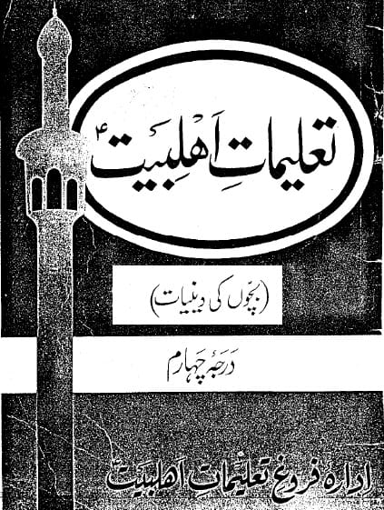 - نام کتاب:تعلیمات اہلبیتؑ (درجہ چہارم ) بچوں کی دینیات ۔ مؤلف : مولانا غلام علی پنجوانی ۔ ناشر:ادارہ فروغ تعلیمات اہلبیتؑ کراچی ، حسن علی بکڈپو کراچی۔ تاریخ نشر: ۔1414 ہجری۔1993 عیسوی۔ زبان: اردو ۔ موضوع:۔ دینیات، اسلامیات، اصول دین و عقائد شیعہ امامیہ،بچوں کی دینیات ،تعلیمات اہلبیتؑ (درجہ چہارم ) بچوں کی دینیات ۔