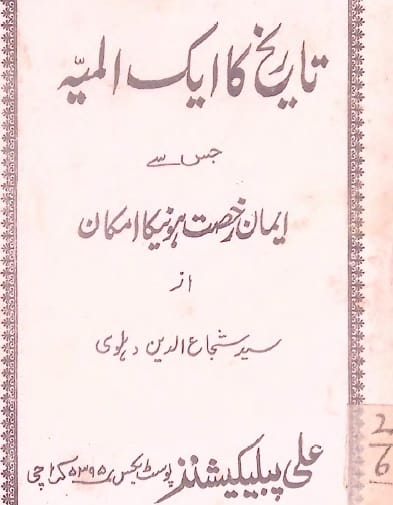 نام کتاب: تاریخ کا ایک المیہ ( جس سے ایمان رخصت ہونیکا امکان ) ۔